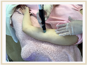 イオン導入ではできなかった大きな分子量のヒアルロン酸も、お肌の深部まで導入できます。