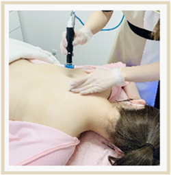ハイドラボディは、ハイドラフェイシャルと同じ工程で背中や二の腕の不要な皮脂や汚れを浮かせて、毛穴の奥までクレンジングするボディケアです。ご自宅のケアでは手の届きにくい部位をしっかりとケアします。ボディの施術ではボディ用の強力剥離用チップを使用することで更に効果を高めます。
