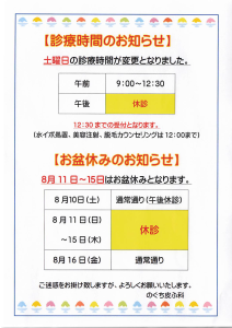8月11日(日)~8月15日(木)はお盆休みとさせていただきます。予めご了承ください。
